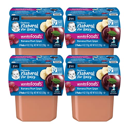 Amazon Com Gerber Baby Food 2nd Foods Blends Banana Plum Grape Puree Wonderfoods Natural Non Gmo 4 Ounce 2 Pack Pack Of 8 Baby
